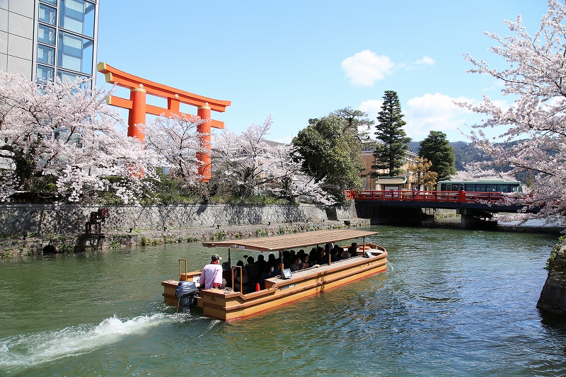 毎年恒例の京都市内での船の旅、岡崎の疎水を左右の桜を鑑賞しながらゆっくりとめぐります。