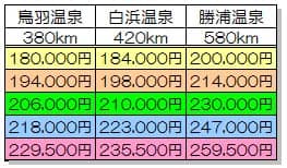 上記はほんの一例です。温泉旅行でご利用頂くことが多い為、主な温泉地を記しています。