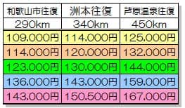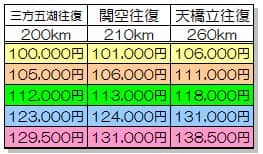 [surfing_su_box_ex box_color="#40fae4" radius="8"]ワンマン運行、1時間~3時間は50kmで計算、その他は100kmで計算しています。