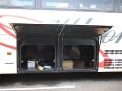 平均的な中型バスで、トランクの大きさは高さ55cm×横幅70cm×奥行き60cm程度のが2つあります。