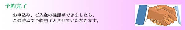 お振込み完了を持ちましてご予約とさせて頂きます。