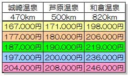 上記はほんの一例です。温泉旅行でご利用頂くことが多い為、主な温泉地を記しています。