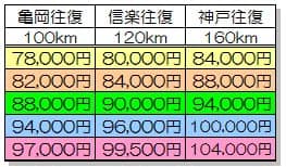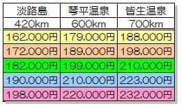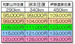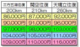 [surfing_su_box_ex title="" box_color="#40fae4" radius="8"]ワンマン運行、1時間~3時間は50kmで計算、その他は100kmで計算しています。