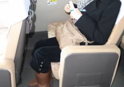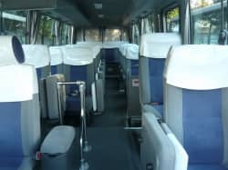 上は送迎用マイクロバスの車内です。座席リクライニングができないタイプが多いです。
