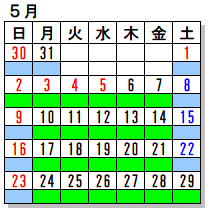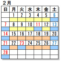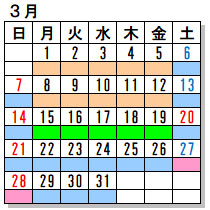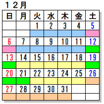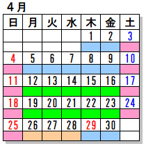 日にちにより色分けしております。詳しくは料金カレンダーをご覧ください。