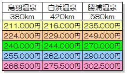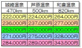 上記はほんの一例です。温泉旅行でご利用頂くことが多い為、主な温泉地を記しています。