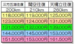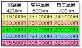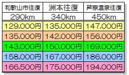 [surfing_su_box_ex title="" box_color="#40fae4" radius="8"]ワンマン運行、1時間~3時間は50kmで計算、その他は100kmで計算しています。